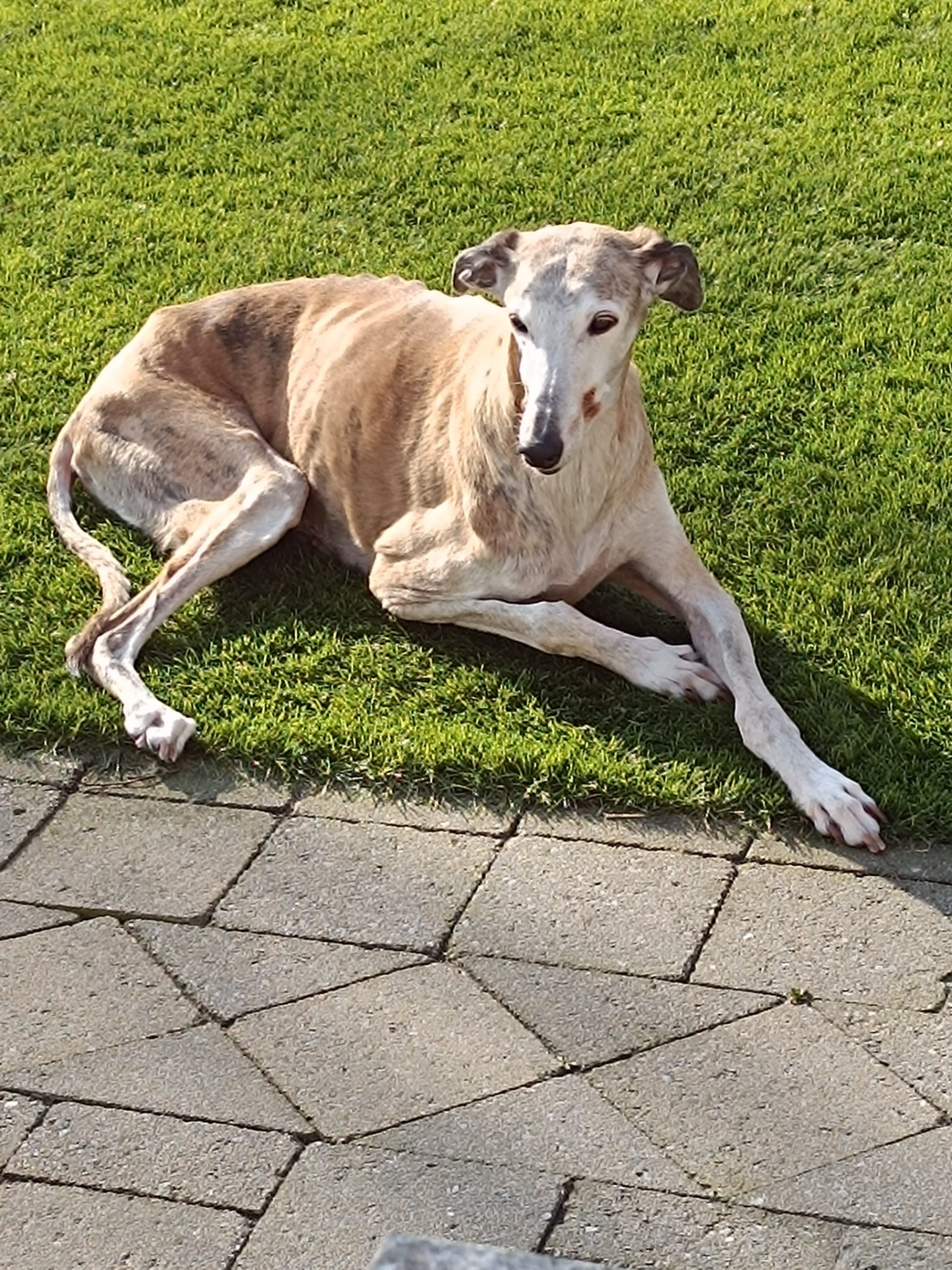 Colada werd geadopteerd via Galgo project en kwam bij Wendy op 11/08/2019. Wendy gaf haar nog 5 jaar een liefdevol en betekenisvol bestaan.
