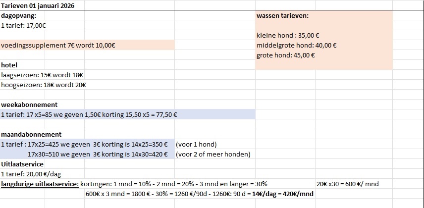 vanaf 1 januari 2026 worden de prijzen voor Vachtverzorging / Wassen!